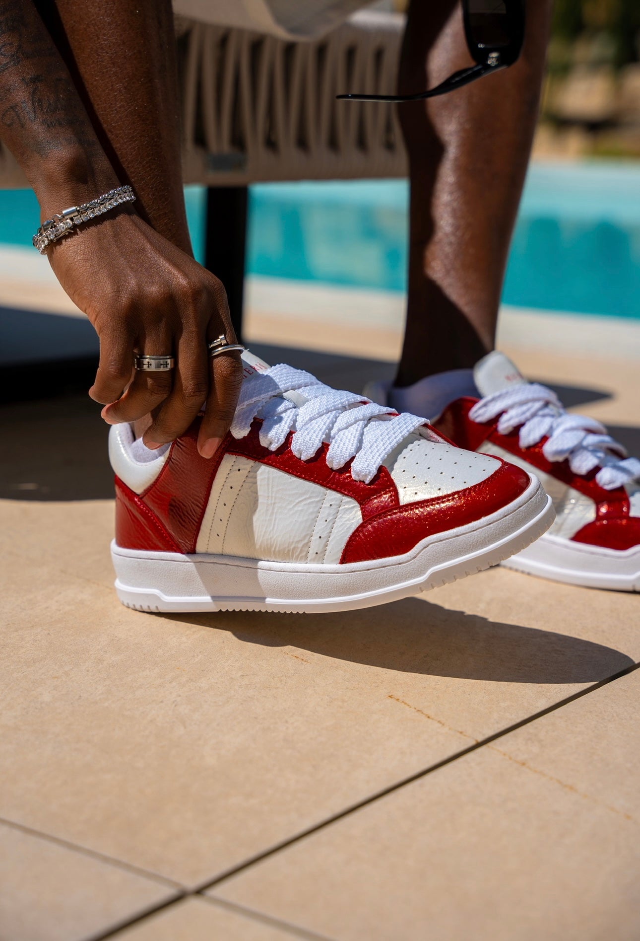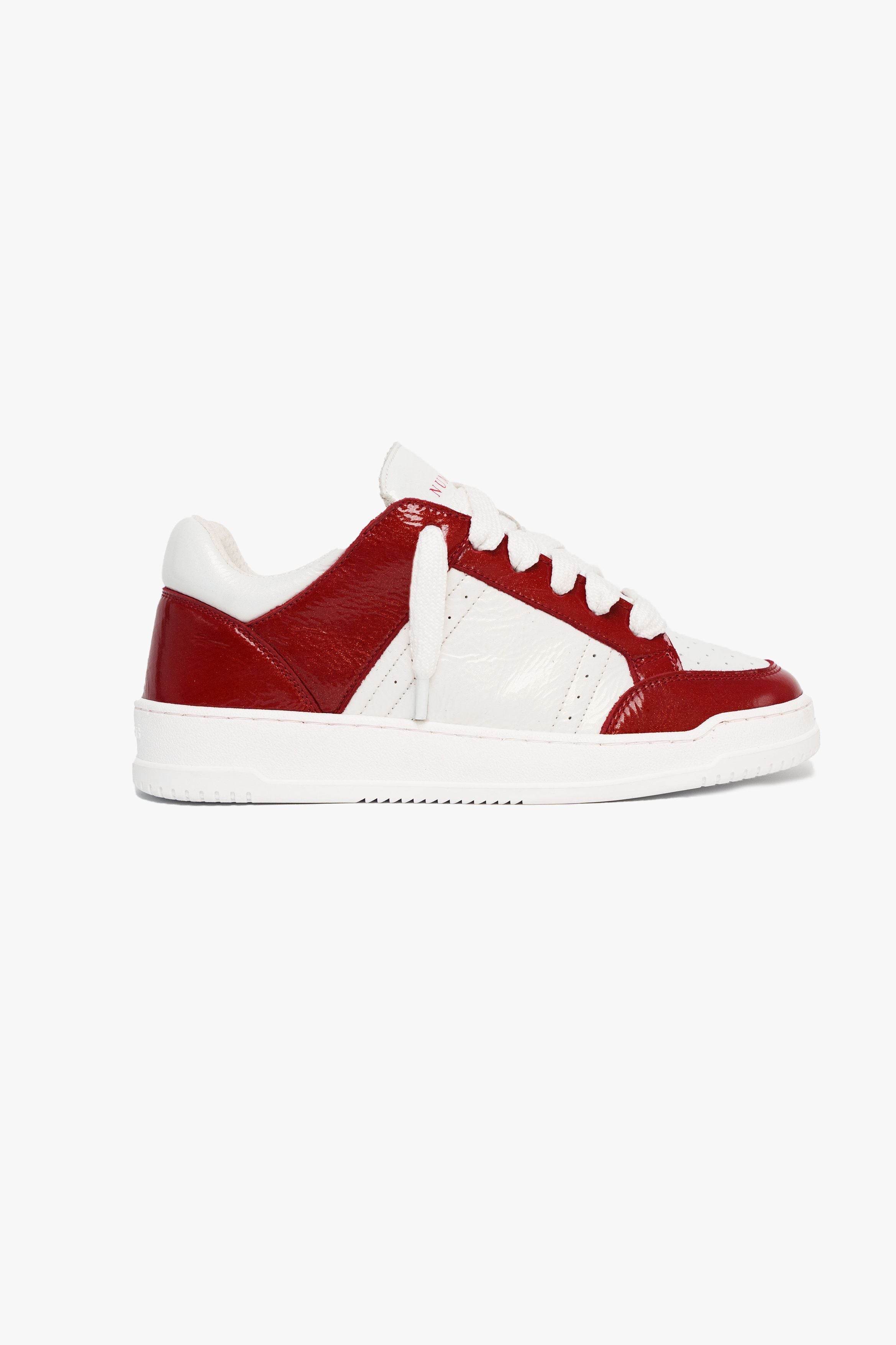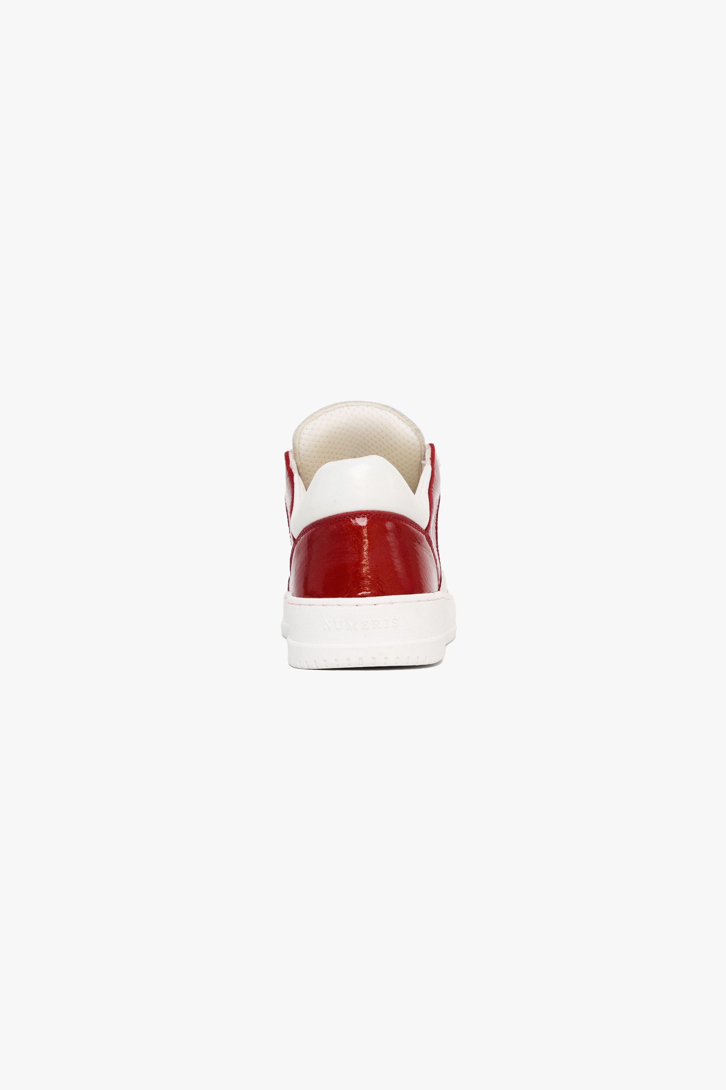 The Arena Sneaker combines everyday luxury and sportswear aesthetic. Arriving in vibrant colorways, the Cherry colourway features a full glossy Italian leather upper - which is complimented with white textured 10mm laces. The interior of the trainer features collar lining providing unrivalled comfort. The upper rests perfectly on top of our custom white sole. The sole itself features Numeriś branding embossed on the rear and is engraved on the under-sole.