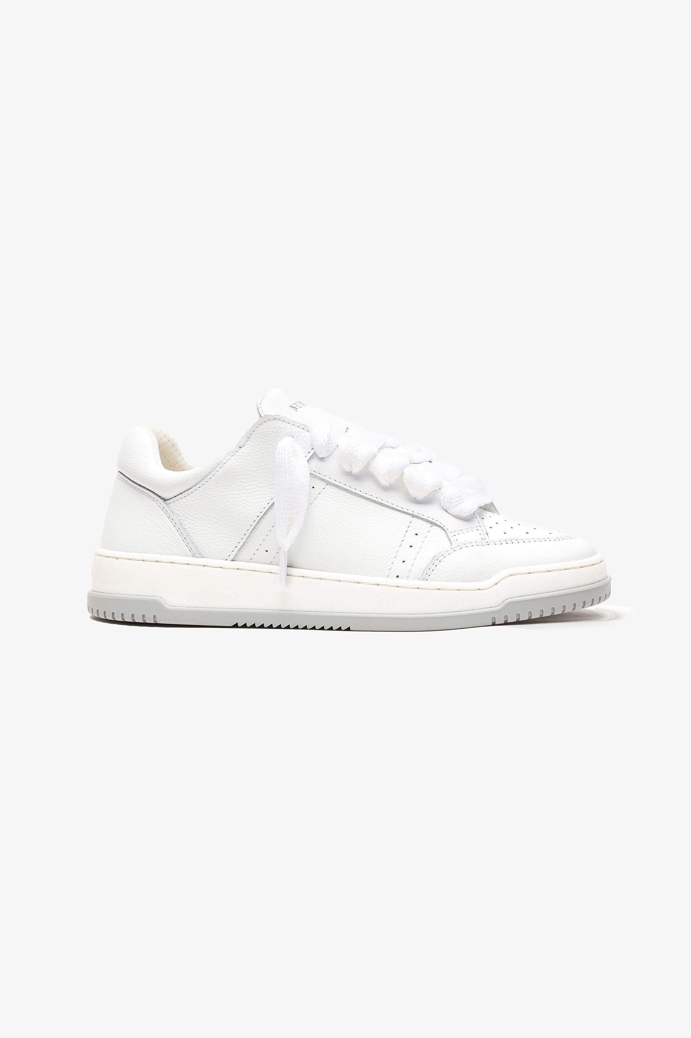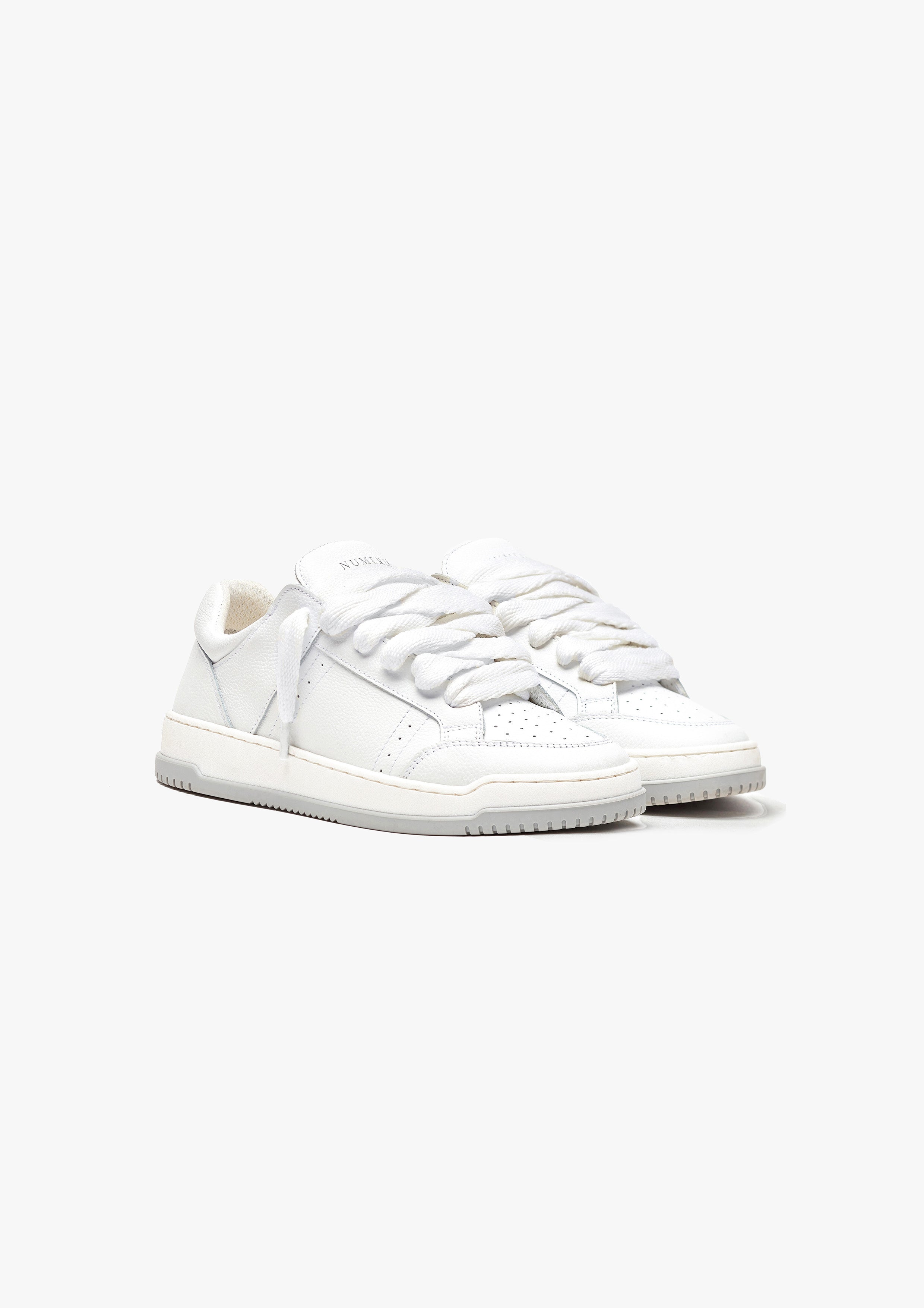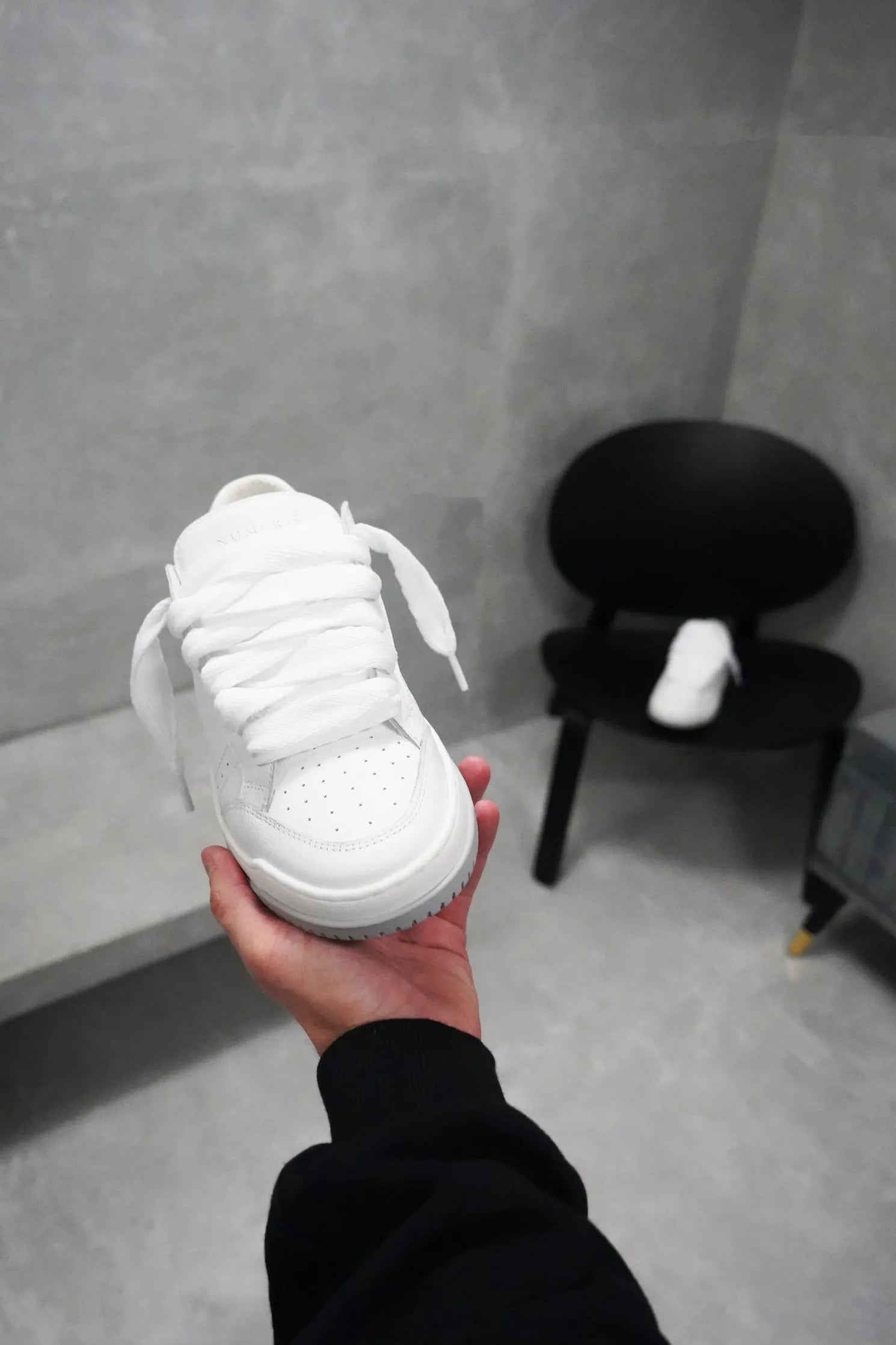 The Arena Chunky Sneaker combines everyday luxury and sportswear aesthetic. The Milk colourway features an all white leather upper which is complimented with white 20mm laces. The interior of the trainer features collar lining providing unrivalled comfort. The upper rests perfectly on top of our two-toned custom sole of grey and white. The sole itself features Numeriś branding embossed on the rear and is engraved on the under-sole.